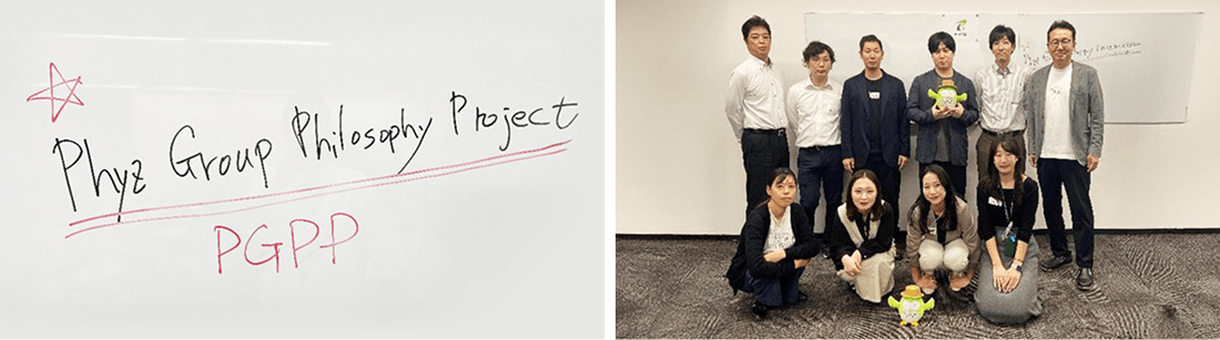 本プロジェクトにはグループ各社からメンバーが参加し、グループ横断型としては初の取り組みとなりました。第一歩としてプロジェクト名称の検討を行い、「Phyz Group Philosophy Project(ファイズグループ経営理念プロジェクト)」、略して「PGPP」と決定しました。
